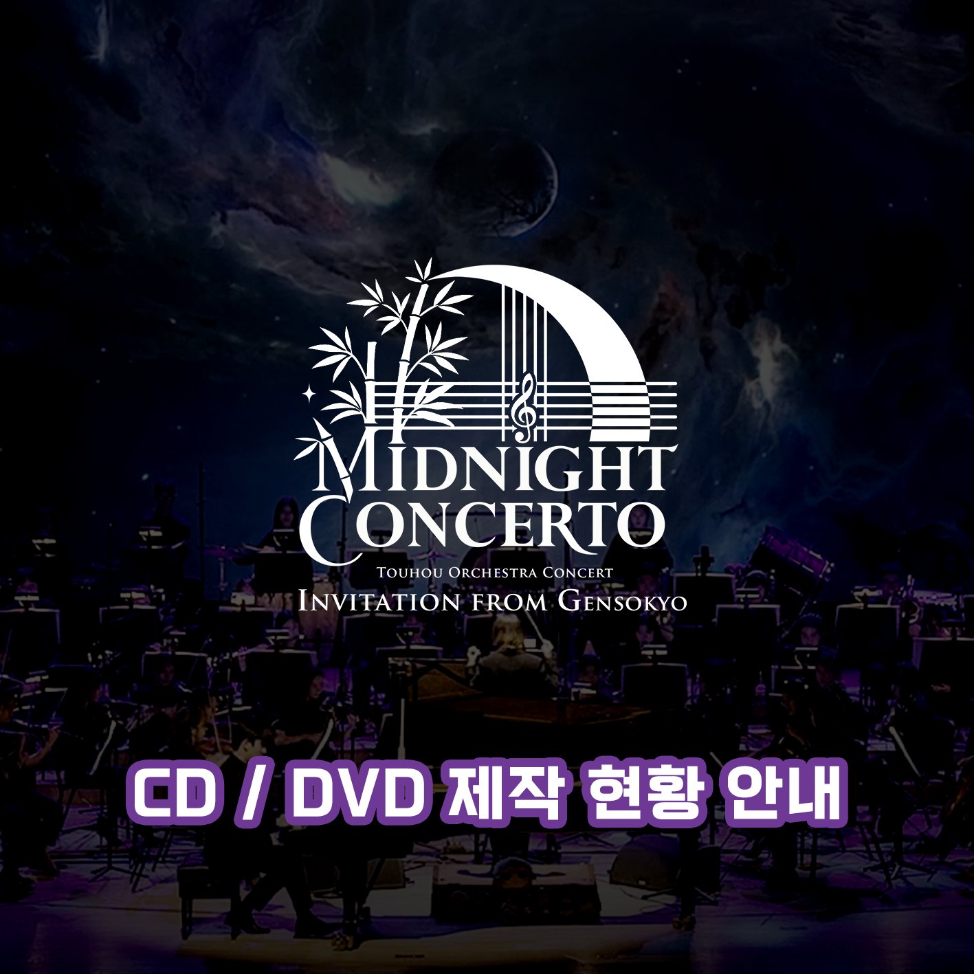 지난 8월 23일 (토) 에 개최되었던 췌몽상과 영야초 중심의 '2025 동방 오케스트라 콘서트 Invitation from Gensokyo 2025 ~ Midnight Concerto' 와 관련하여, 현재 제작중인 CD 와 DVD 에 대한 소식이 갱신되었습니다.
