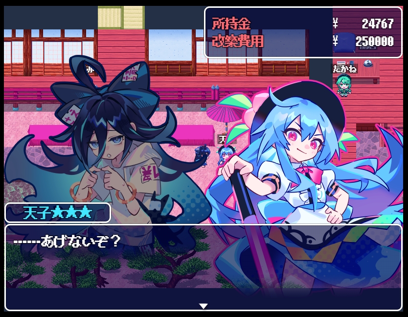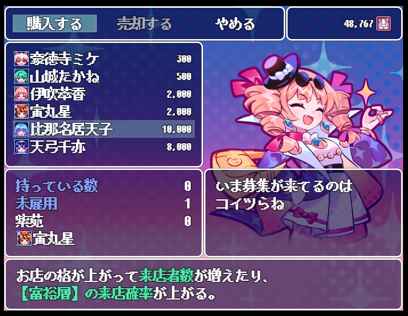 뒤에 텐시가 나오면 부유층 손님의 방문 확률을 높일 수 있어서 그쪽을 통해 돈을 많이 뜯어낼 수 있었습니다.