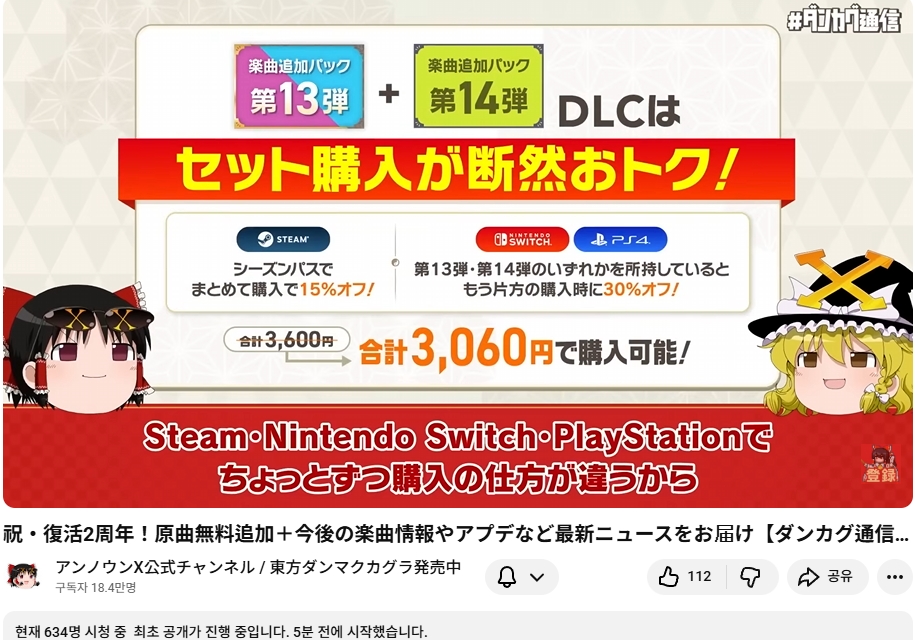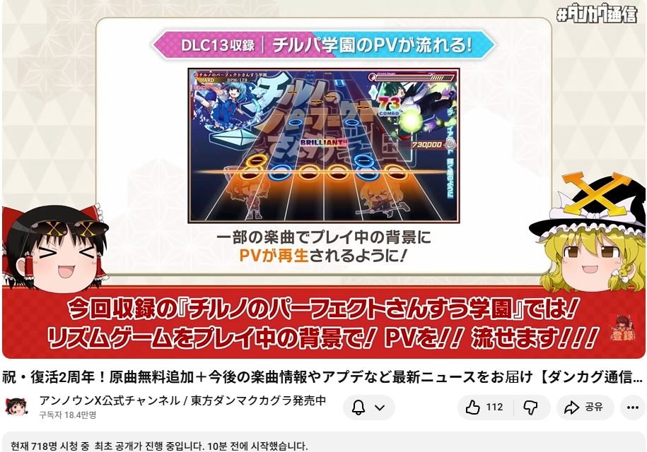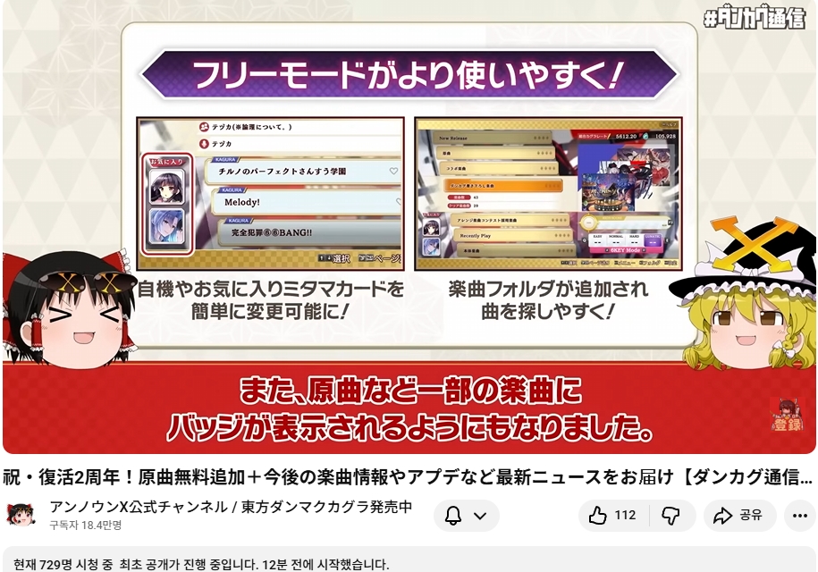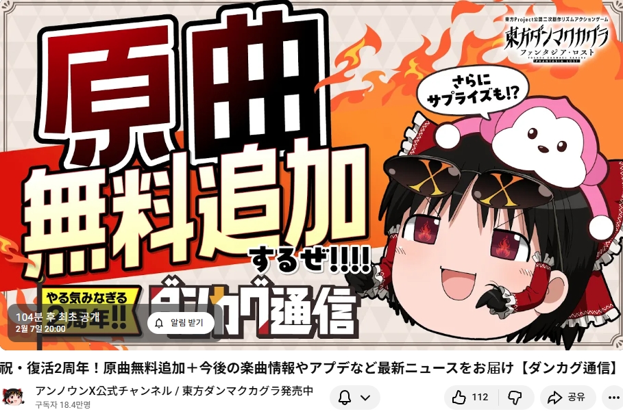 2월 7일 (토) 오늘 20시부터 동방탄막카구라의 부활 (스팀판 등장) 2주년을 맞아 탄카구 통신 방송이 있었습니다.