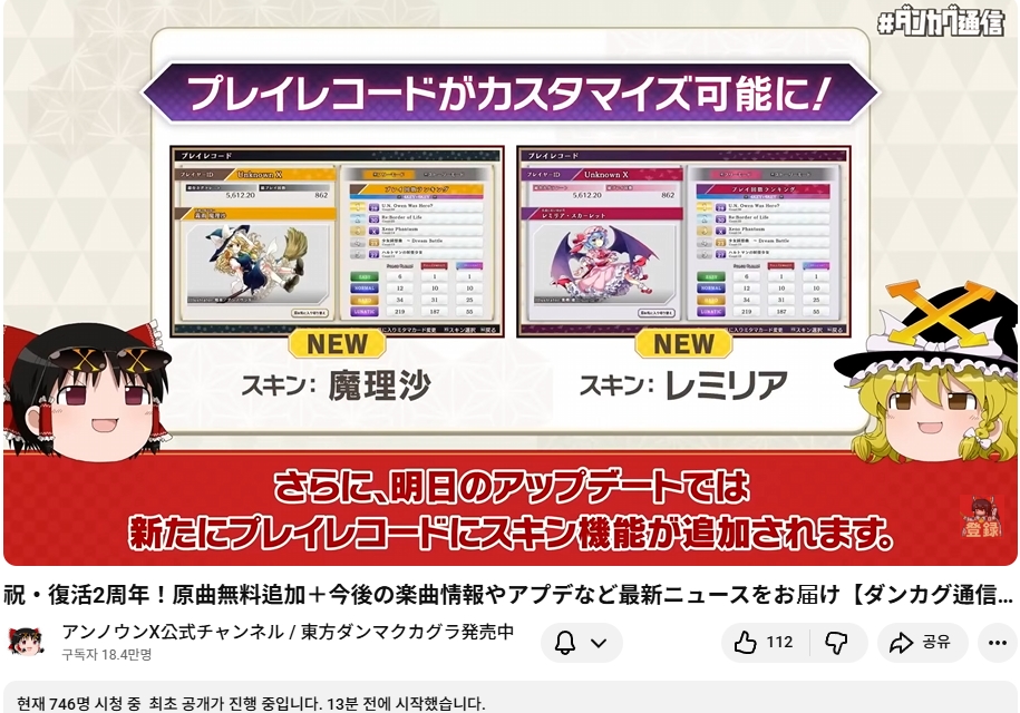 언노운X, 동방탄막카구라 부활 2주년 '탄카구 통신' 방송을 실시. 신규 악곡 정보 등