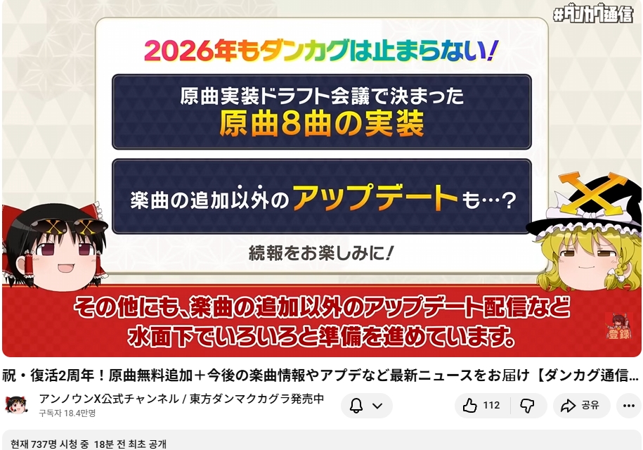 축・부활 2주년! 원곡 무료 추가 + 앞으로의 악곡 정보나 업데이트 등 최신 뉴스를 담아서 [탄카구 통신]
