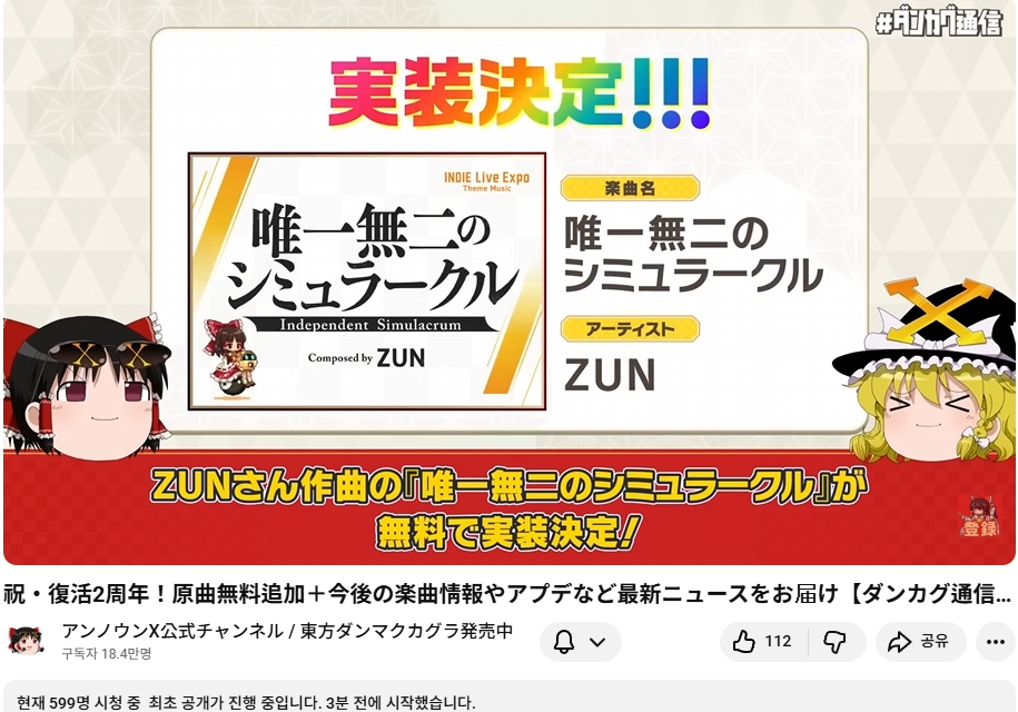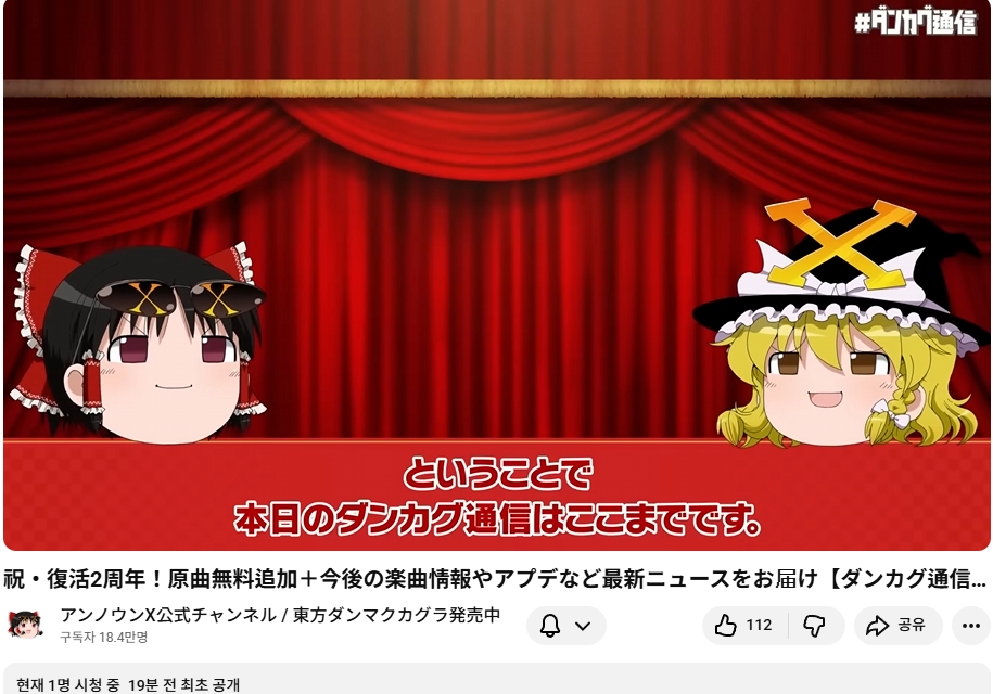 ○ 관련 : https://simugung.tistory.com/983 언노운X, 동방 30년 돌파 기념 '탄카구 신년회' 방송 실시 (ZUN님 게스트)