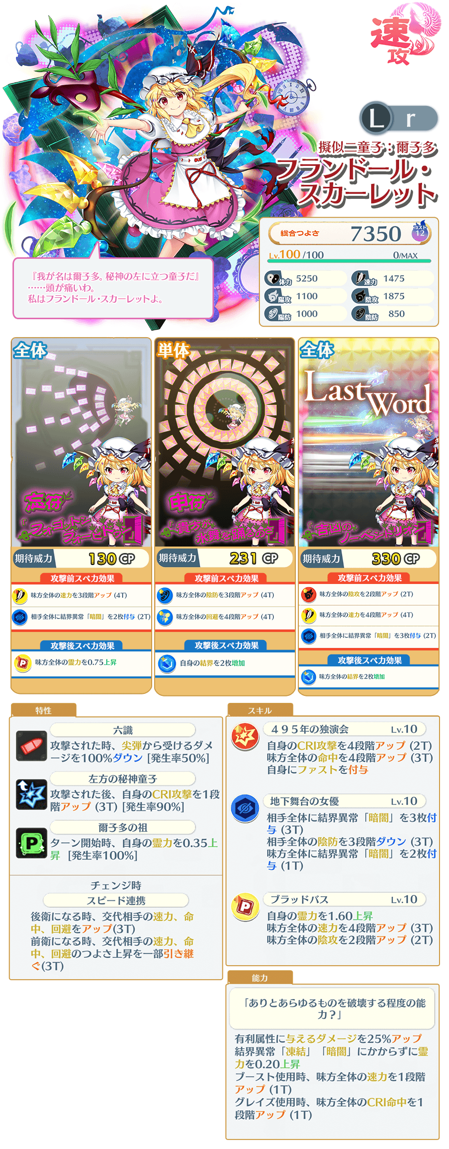 「擬似二童子:爾子多 フランドール・スカーレット(Lr) 」が登場します✨