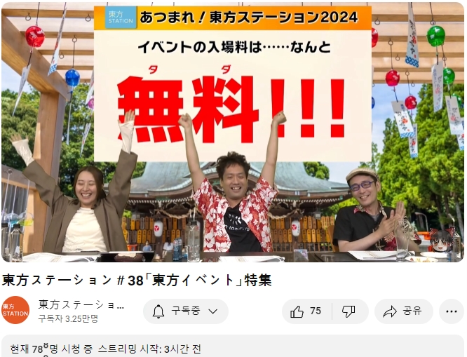 ○ 관련 : https://simugung.tistory.com/252 2024년의 초회의 개최일입니다. 동방스테이션의 출장 방송 '요즘 최근의 동방 특집' 도 2024년의 초회의 개최일입니다. 동방스테이션의 출장 방송 '요즘