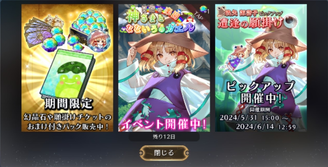 ・洩矢諏訪子ピックアップ 遭逢の願掛け開催 모리야 스와코 픽업 개최