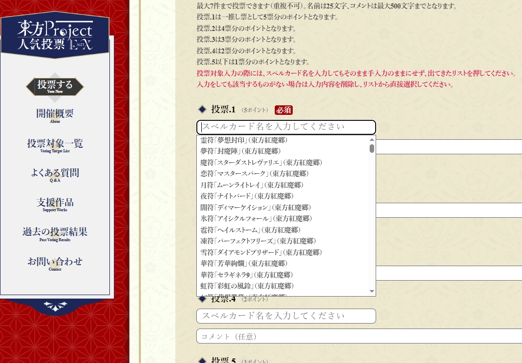 自分の好きな東方スペルへ是非投票しましょう!