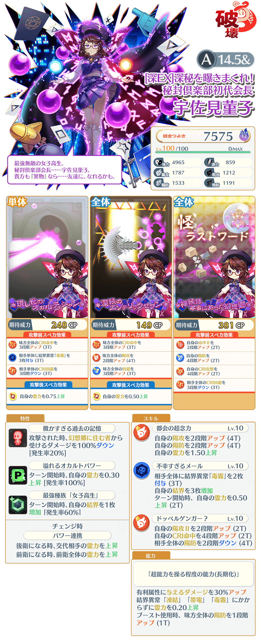 [深EX]深秘を曝きまくれ!秘封倶楽部初代会長 宇佐見菫子(A14.5&)