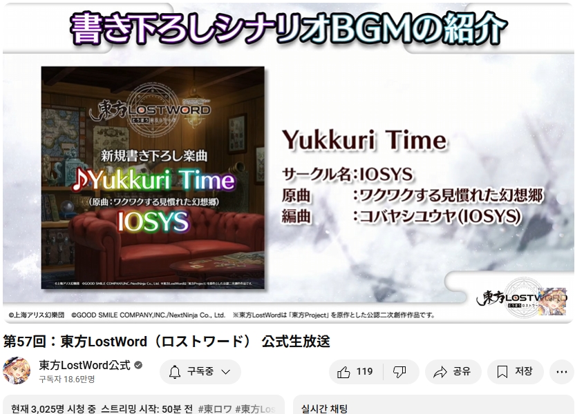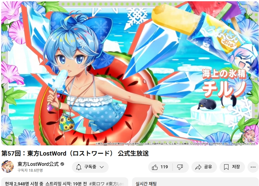 8월 26일 (화) 19시부터 동방프로젝트 2차창작 스마트폰용 게임인 동방로스트워드의 최신 정보를 다루는 공식 생방송이 있었습니다. MV 프로젝트 신작의 발표 및 9월 게임 업데이트 정보 들을 다루고 있었습니다.