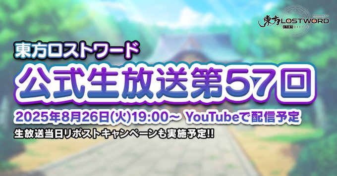 — 東方LostWord公式(東方ロストワード) (@Touhou_LW) August 23, 2025