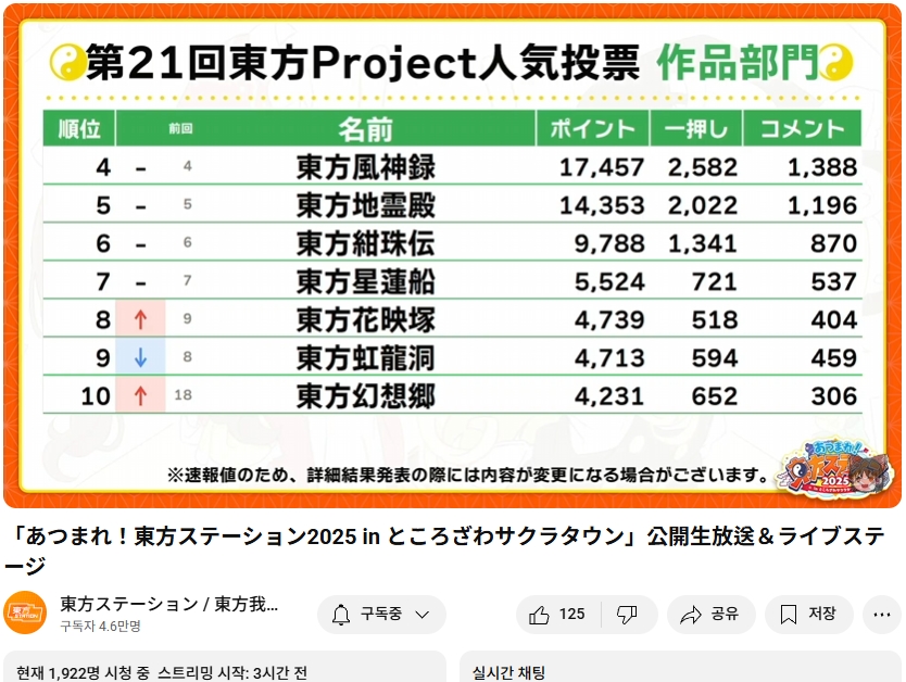 모여라! 동방스테이션 2025 행사 개최(8/30 토), 아키마키님 사인회와 공개 생방송, 인기투표 결과 발표 등 여러 기획도