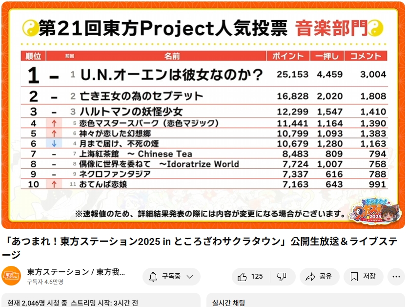 이쪽은 여기를 참조 https://toho-vote.info/result