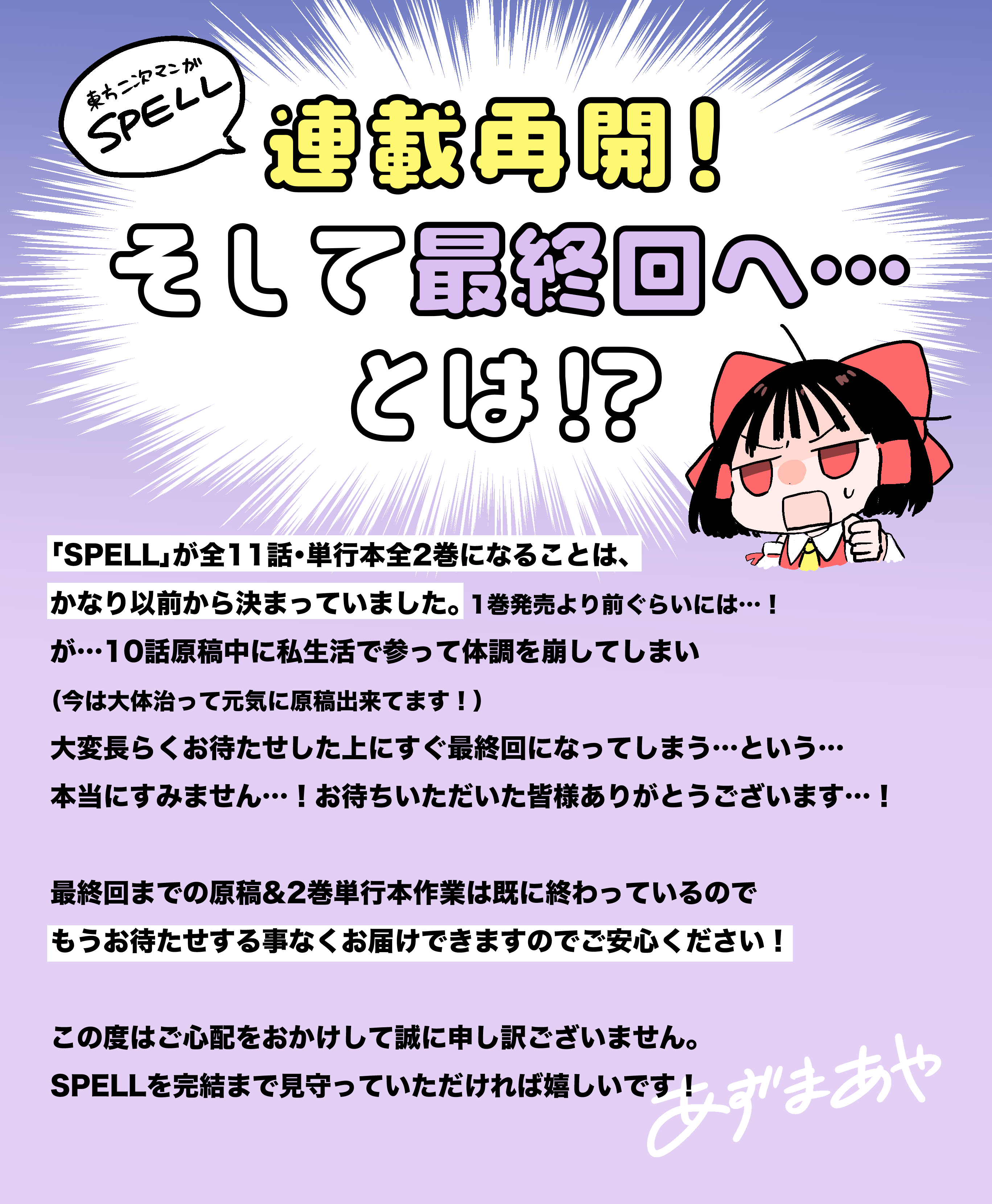 8/25 갱신, 아즈마아야 선생님 ( @a_to_z ) 집필의 「SPELL」 연재 재개 !