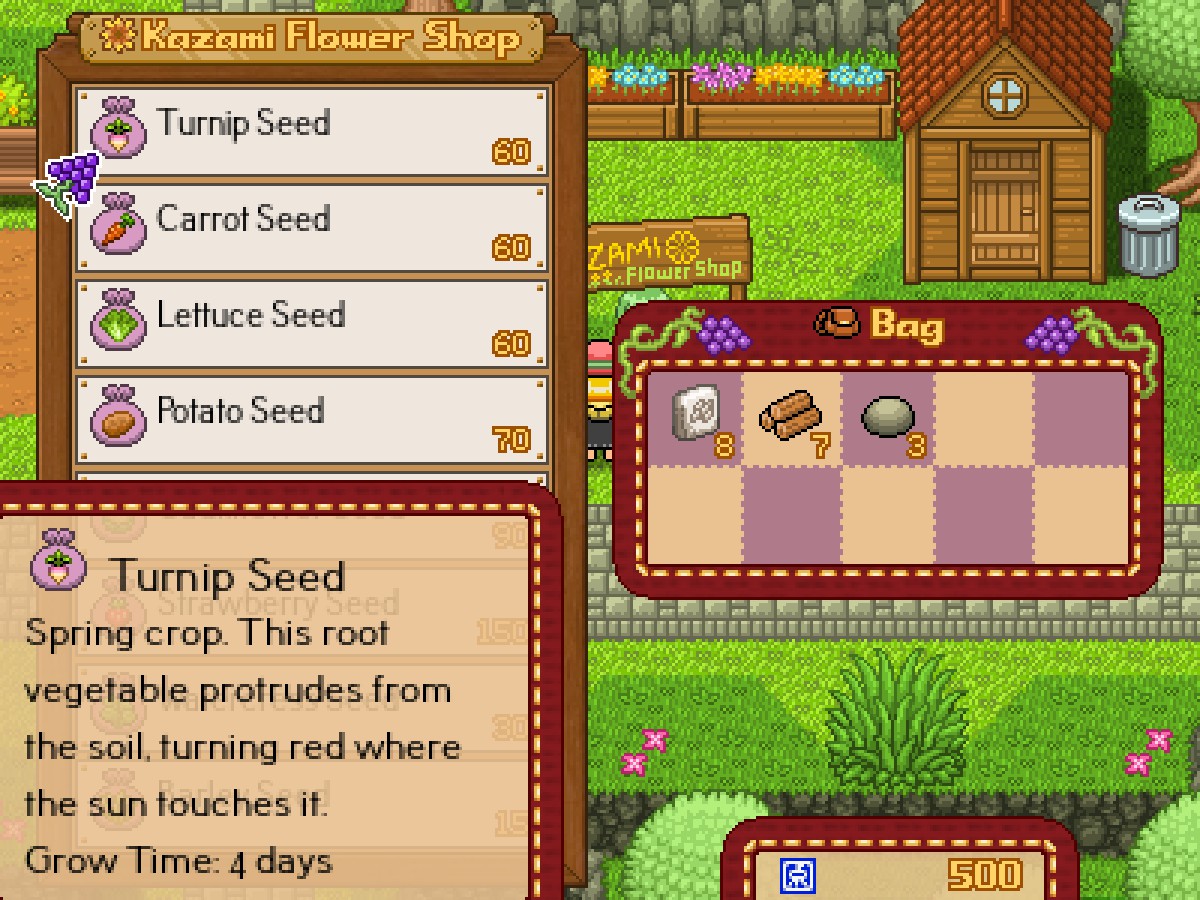 미노리코의 농장에서 북쪽으로 다면 요괴산 마을이 있는데, 여기서 유카가 씨앗을 판매합니다.