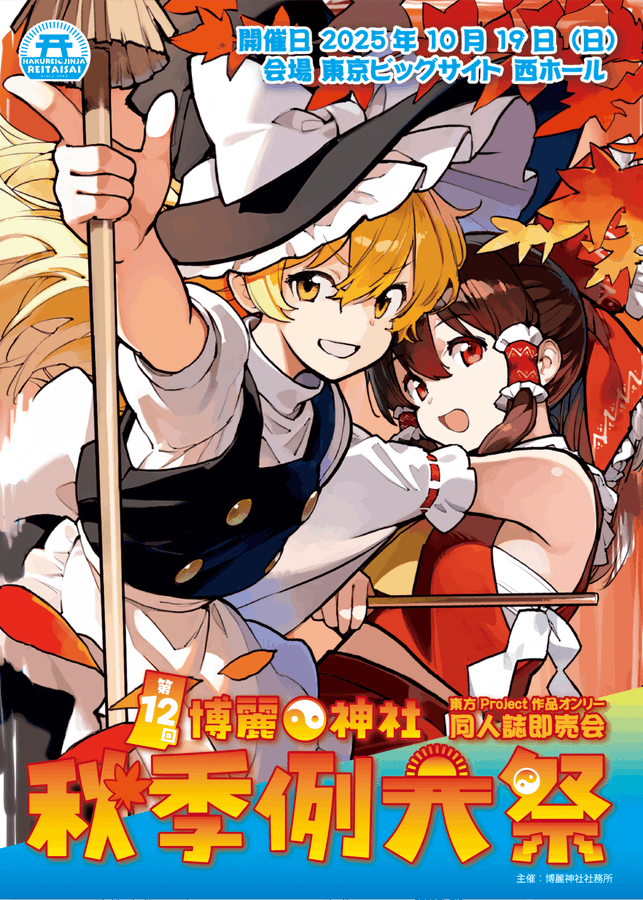 2025年10月19日開催の第十二回博麗神社秋季例大祭カタログ表紙イラストを担当させていただきました😊