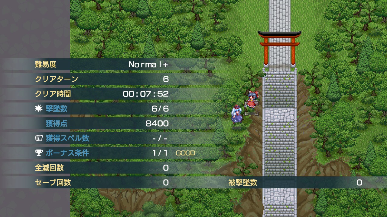 게임은 레이무 루트와 마리사 루트로 나눠져 있는데, 주인공을 누구로 고르는가에 따라 일부 스테이지 분기 및 유닛 구성에서 차이가 생깁니다. (결과적으로는 서로 합류하여 같이 진행하게 됩니다.)