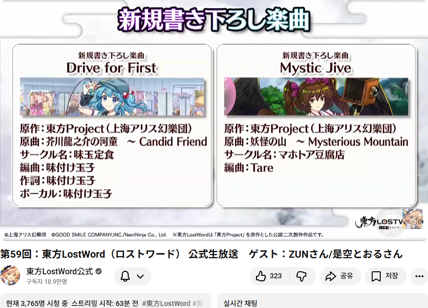 어제인 10월 26일 (일) 오후 6시부터 동방 2차창작게임인 동방 로스트워드의 신규 정보 등을 다루는 방송이 있었습니다.