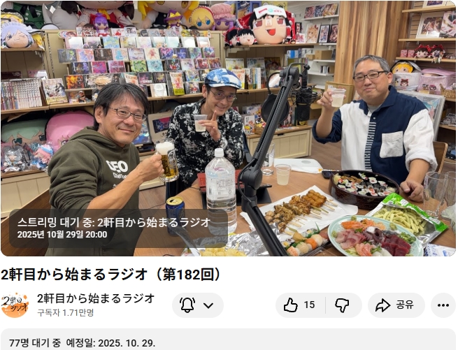 2025년 10월의 두잔라디오 방송일 입니다. 게스트로 호조님과 야마기시P님이?