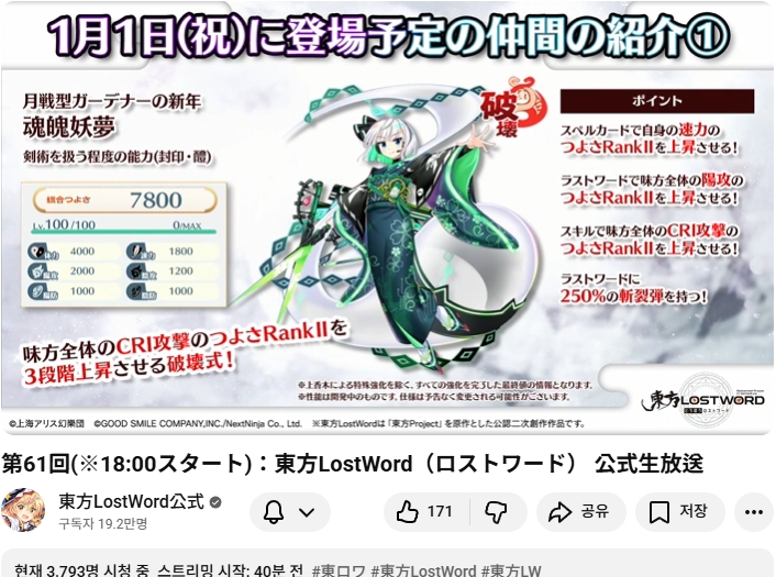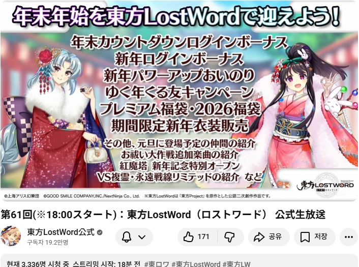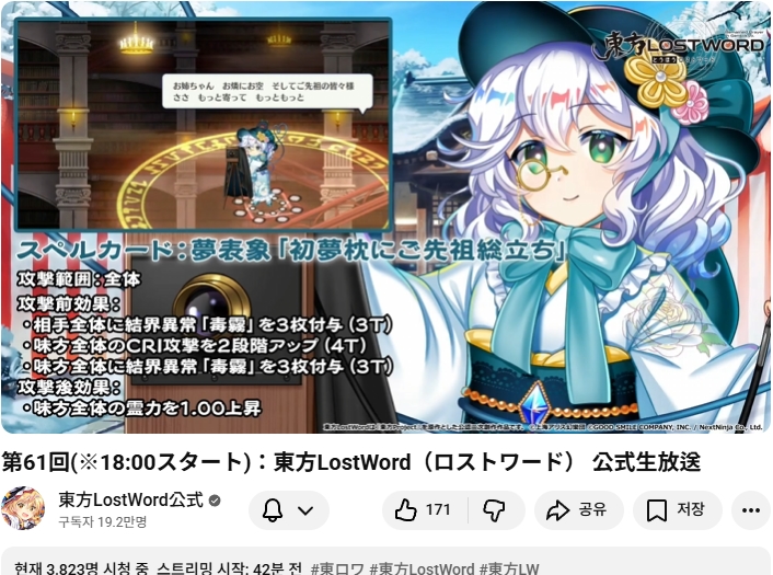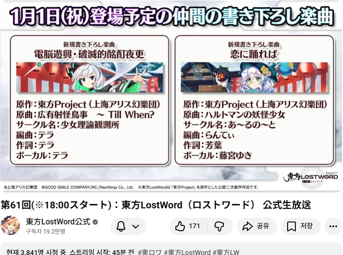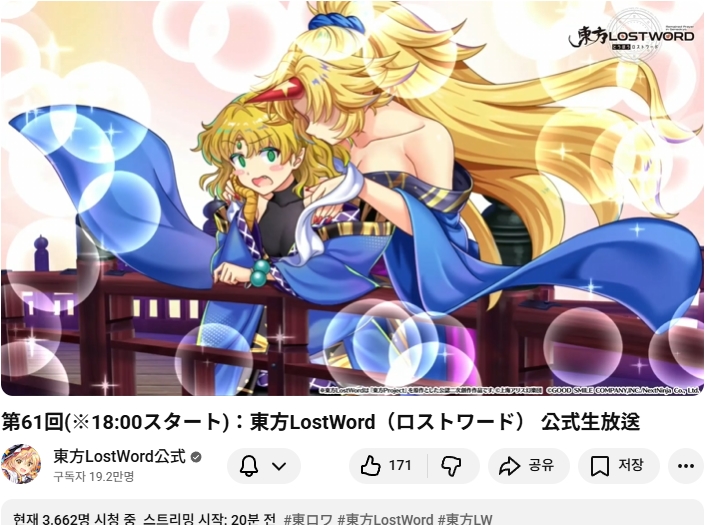 제61회 (18시 시작) : 동방로스트워드 공식 생방송