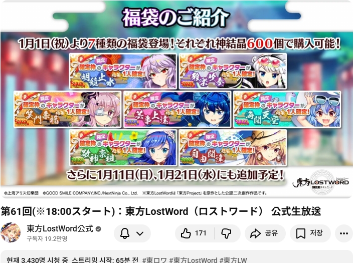 12/25 (목) 오늘 18시부터 동방로스트워드의 신규 업데이트 정보, 굿즈 정보, MV 정보 등을 다룬 공식 생방송이 있었습니다.